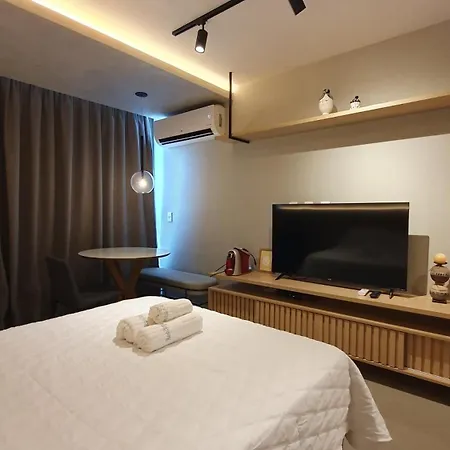 The 25 m² Flat - Rooftop 470 - Boa Viagem Recife is located 6 km from the Madre Deus Church of the Mother of God and within a 15-minute drive of the strikingly red Paco do Frevo Museum. The apartment features a terrace, providing guests with seaside views of the garden.